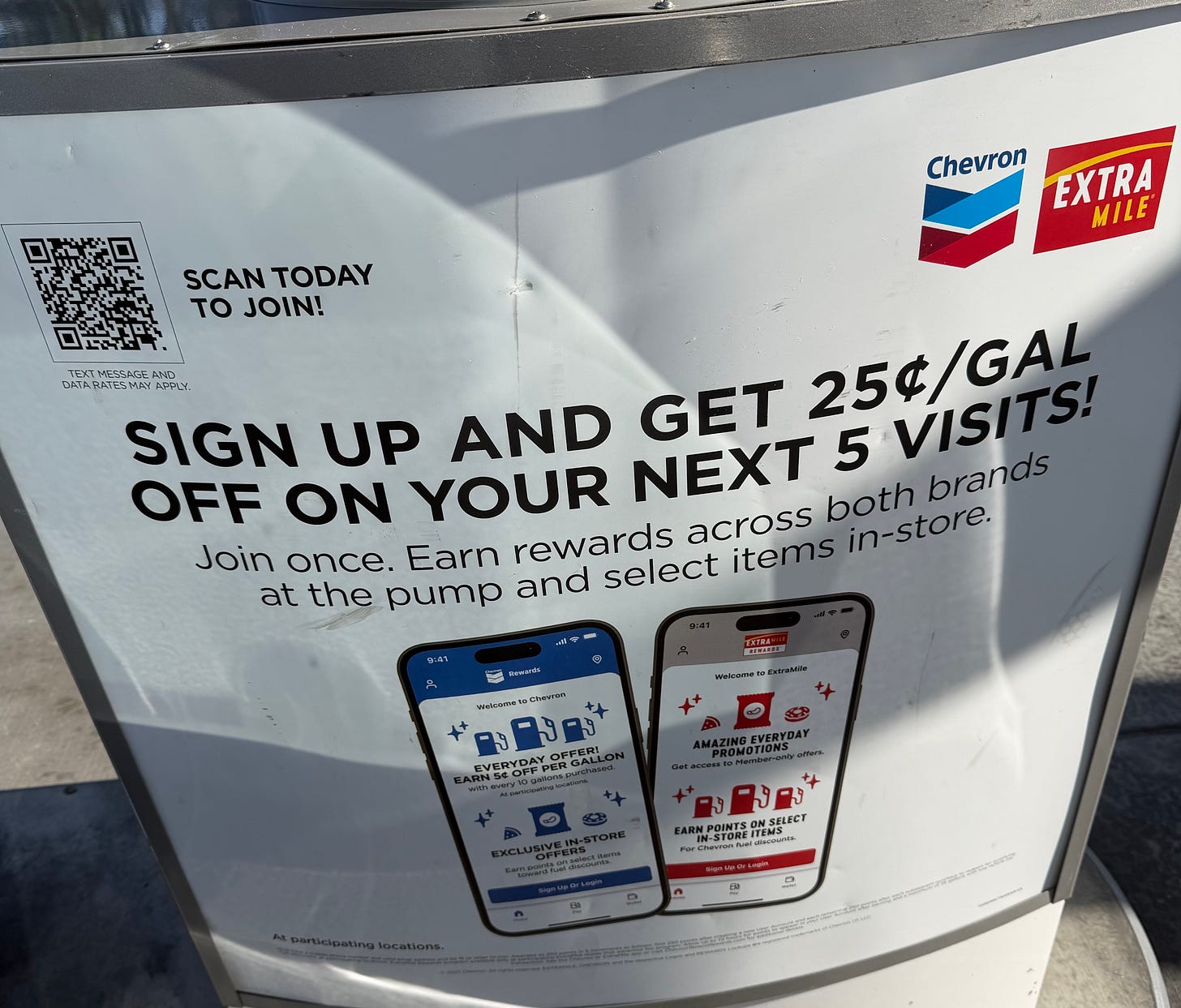 If you’re one of the millions of people hurt by the gas crisis, maybe this can help a little bit. I’m a big fan of the Chevron app, but now seems like the best time to take advantage of the sign up offer: save a quarter per gallon on your next five trips.